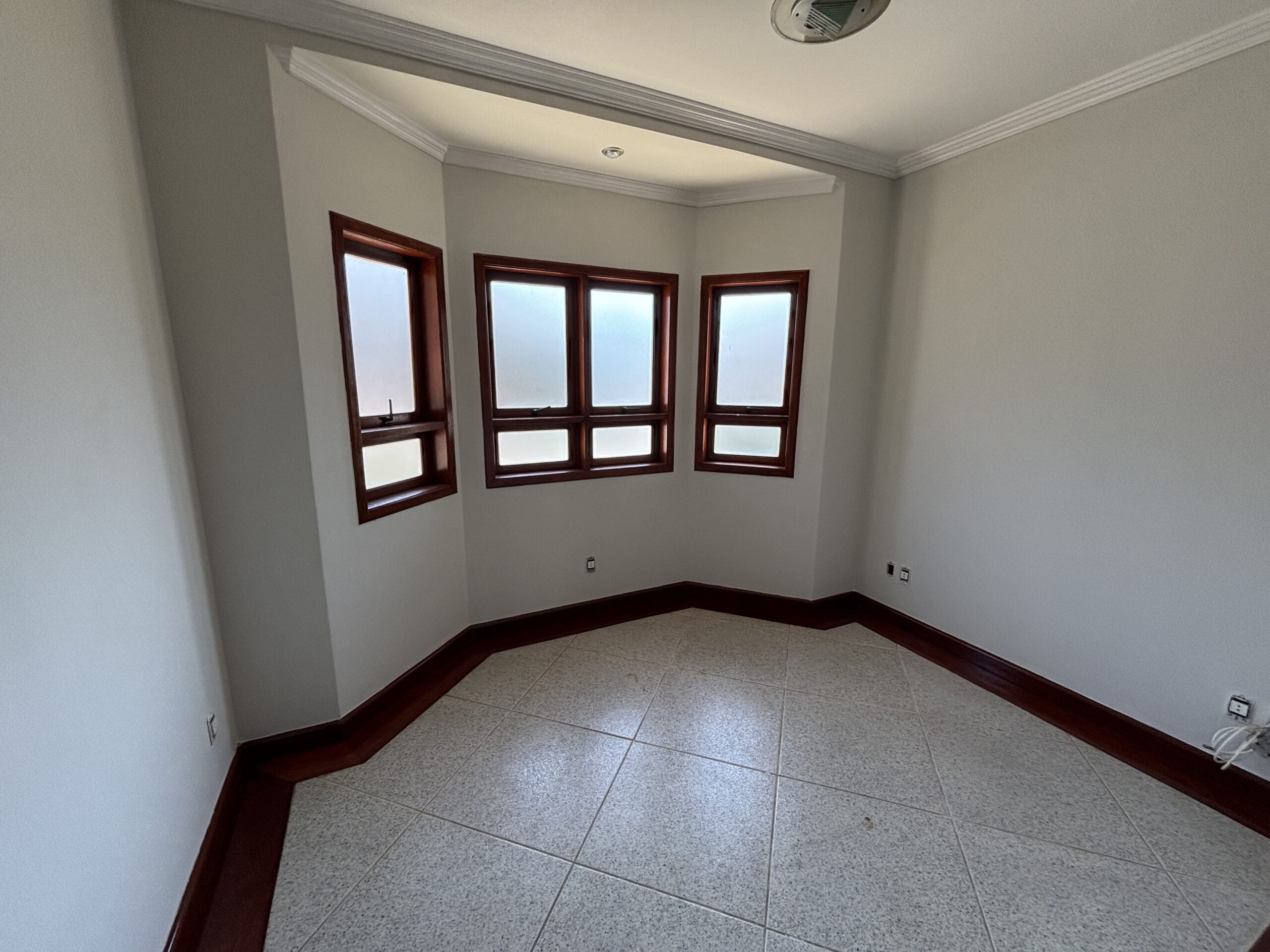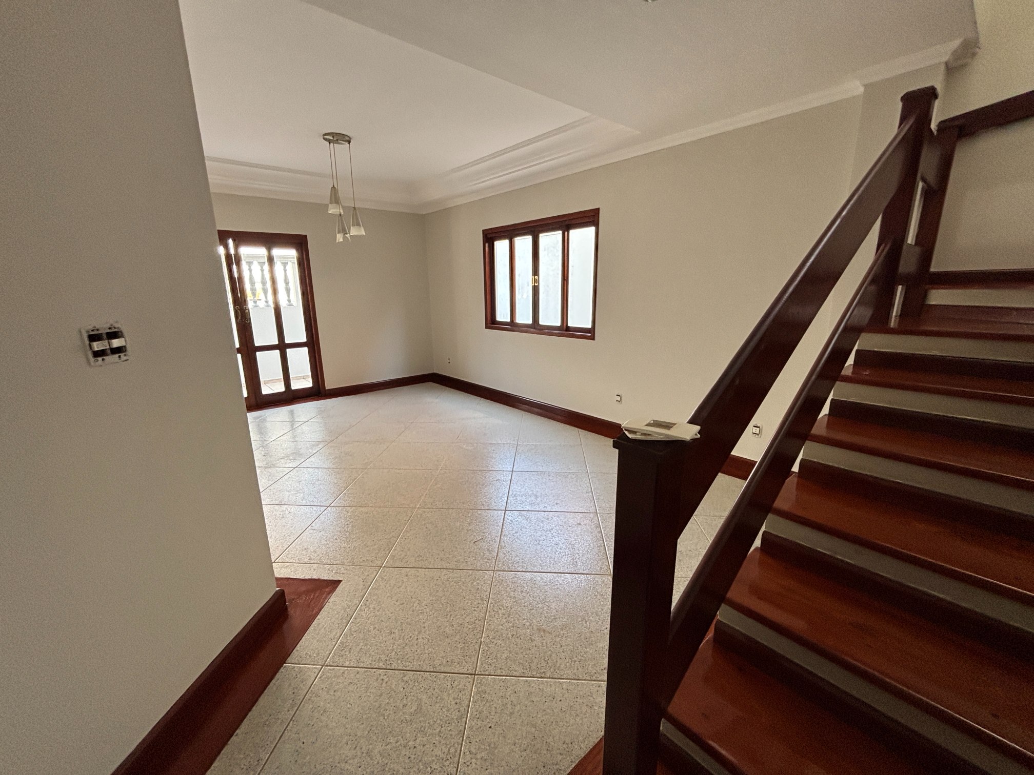 O andar térreo dispõe de uma ampla sala para dois ambientes, integrando convivência e jantar, além de escritório ideal para home office ou estudo. A moderna cozinha, com excelente iluminação natural, é complementada por uma prática despensa, facilitando o armazenamento e a organização do dia a dia. A casa ainda conta com quarto de empregada, favorecendo o suporte às tarefas domésticas.