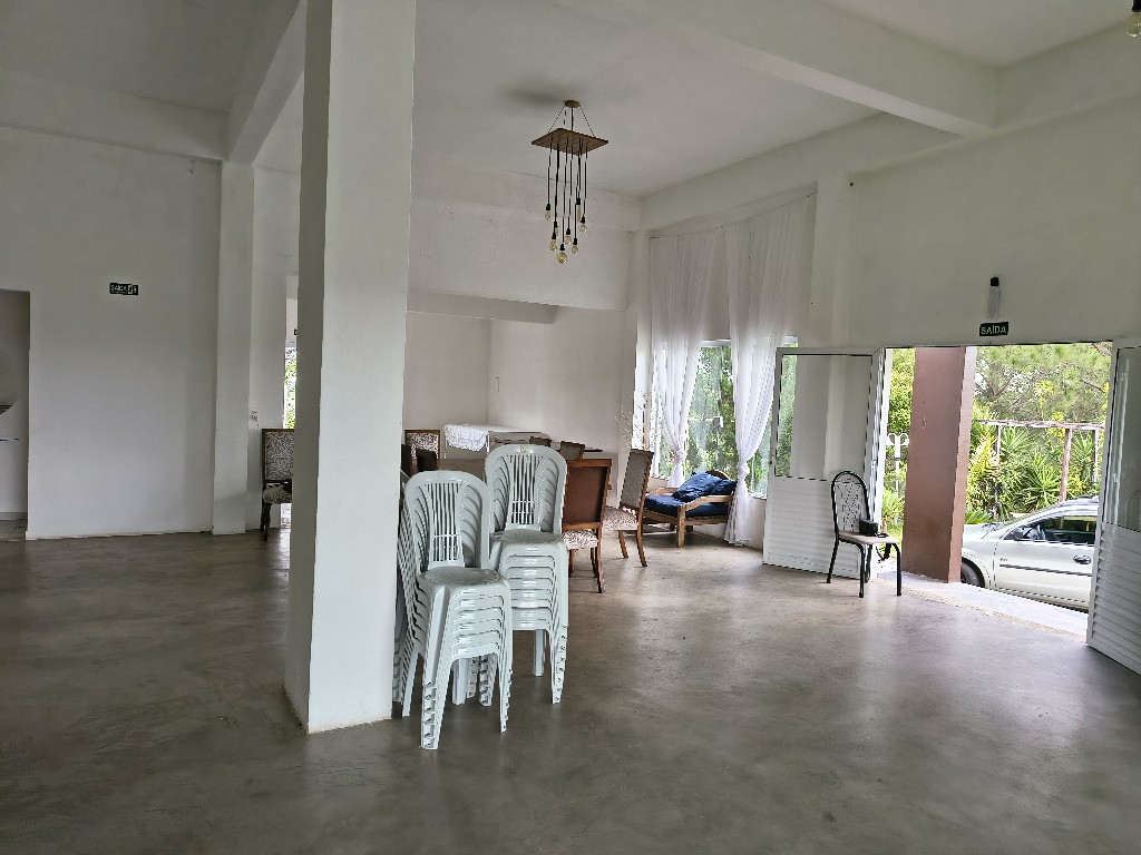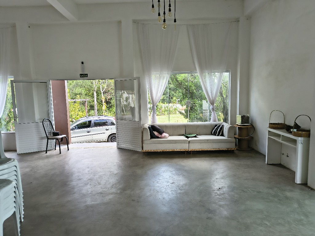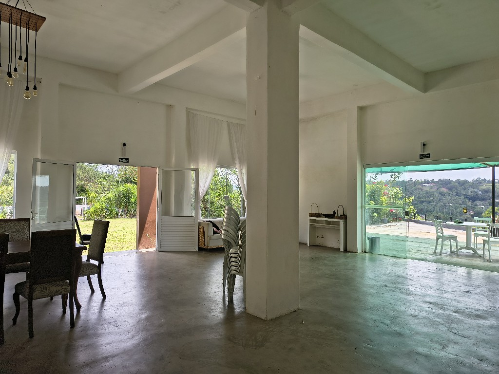 O salão principal é amplo e acolhedor, ideal para recepções e celebrações. Conta ainda com banheiros modernos, uma cozinha espaçosa para apoio de buffet, um deck encantador com vista panorâmica e uma suíte com hidromassagem, oferecendo conforto e exclusividade aos noivos ou anfitriões.