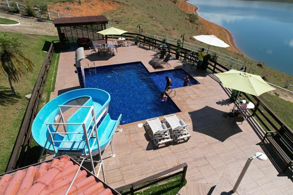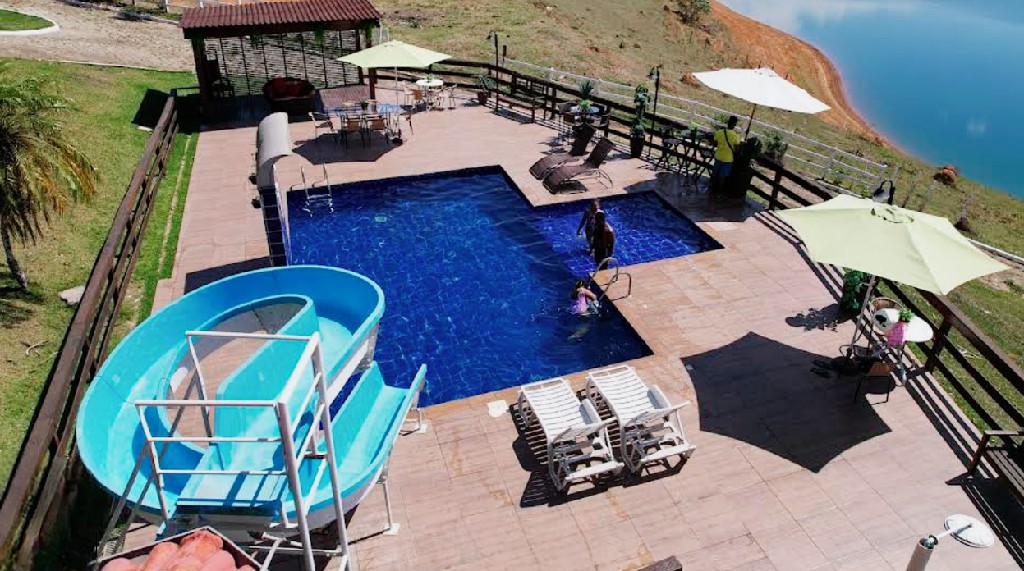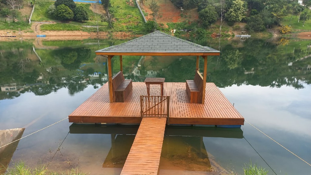 Conta com uma piscina equipada com toboágua para diversão protegida, além de caminhos calçados que facilitam o acesso a todas as áreas do sítio. A presença de diversas árvores frutíferas proporciona um ambiente agradável e acolhedor. Um lago natural com píer completo o cenário ideal para pescaria e contemplação.